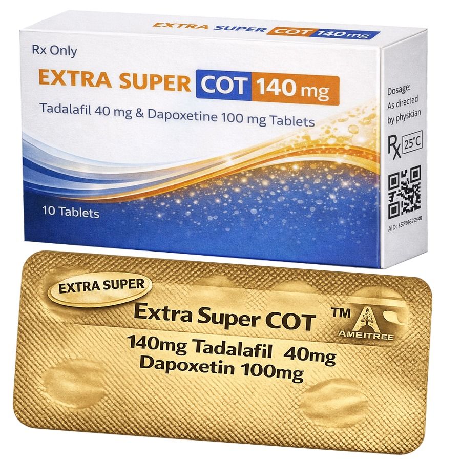 Extra Super COT 140mg je vylepšený generický Cialis 40mg o 100mg Dapoxetine, teda ako dva lieky v jednej tablete. Dapoxetine je už dlho účinným liekom predčasnej ejakulácie a lepšej kontroly nad predčasnou ejakuláciou. Extra Super COT 140mg úspešne lieči impotenciu a problémy s erekciou (erektilnej dysfunkcii) a po jeho užití je umožnené skoro každému mužovi dosiahnuť veľmi kvalitné a dlhotrvajúce erekcie a užiť si tak lepšie a dlhší sexuálny styk.